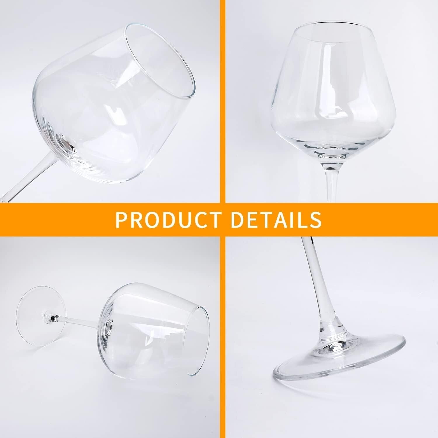 14oz Red Wine Glasses Set of 6,Clear Crystal Burgundy Glasses for Wine Tasting