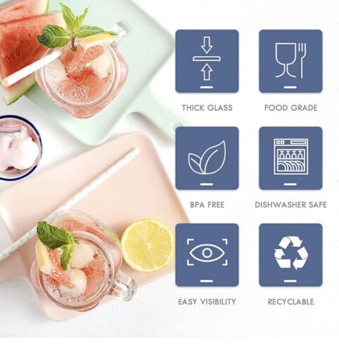 9 Pack 16 Oz Mason jar Drinking Glasses, Mason Mugs with Handle, Old Fashioned R