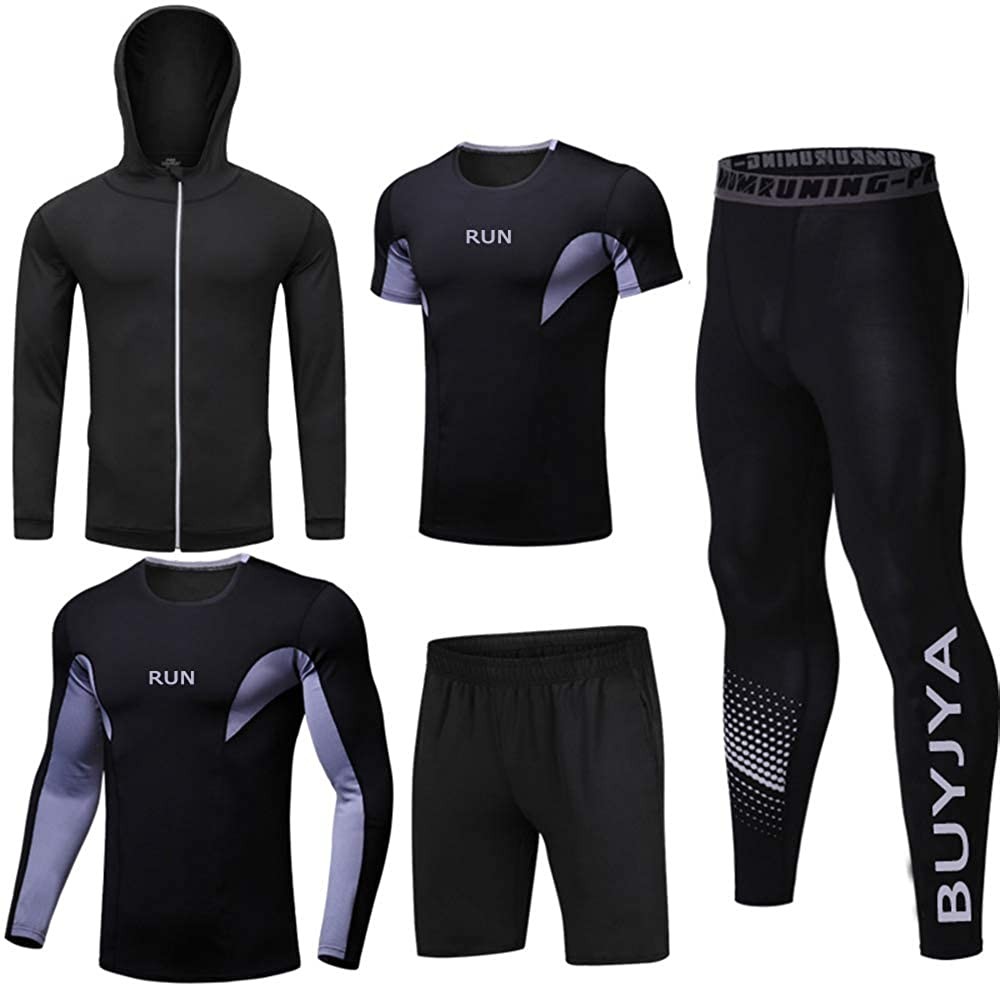BUYJYA 5Pcs Men's Compression Pants Shirt Top Long Sleeve Jacket Athletic Sets G