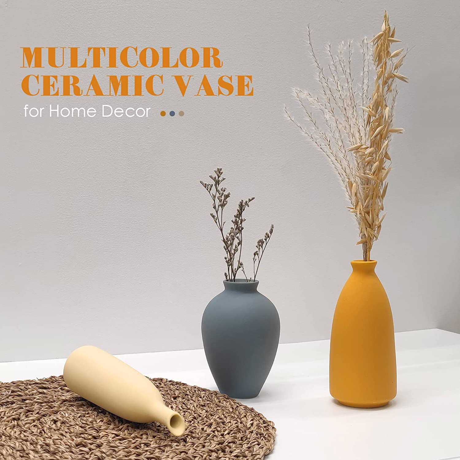 Ceramic Vase Set of 3 Small Flower Vases for Rustic Home Decor Modern Farmhouse