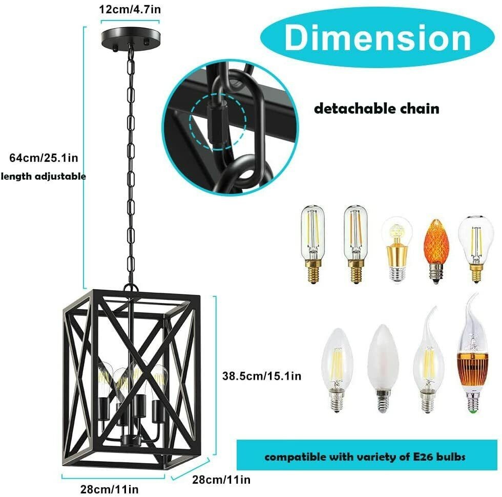 Farmhouse Pendant Lights Kitchen Island, Indoor Outdoor Hanging Chandelier, Blac