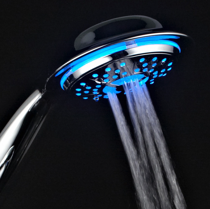 Connects in Minutes without Tools, Both Showerheads Feature Hydro Supercharged Turbine LED, No Batteries, Powered by Running Water, 4-Inch Face, Limited 1-year Warranty., Color of LED Lights - 7 Colors, 5 ft. Stainless Steel Hose, LED Lights Powered By Running Water, Adjustable Angle, High Pressure, LED Colors Gradually Blend Into One Another
