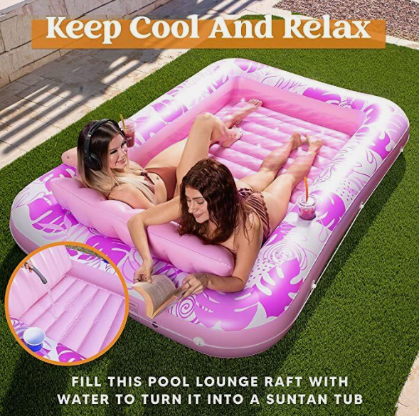 Fill this pool lounge raft with water to turn it into a suntan tub. Keep cool and tan in the water at the same time!