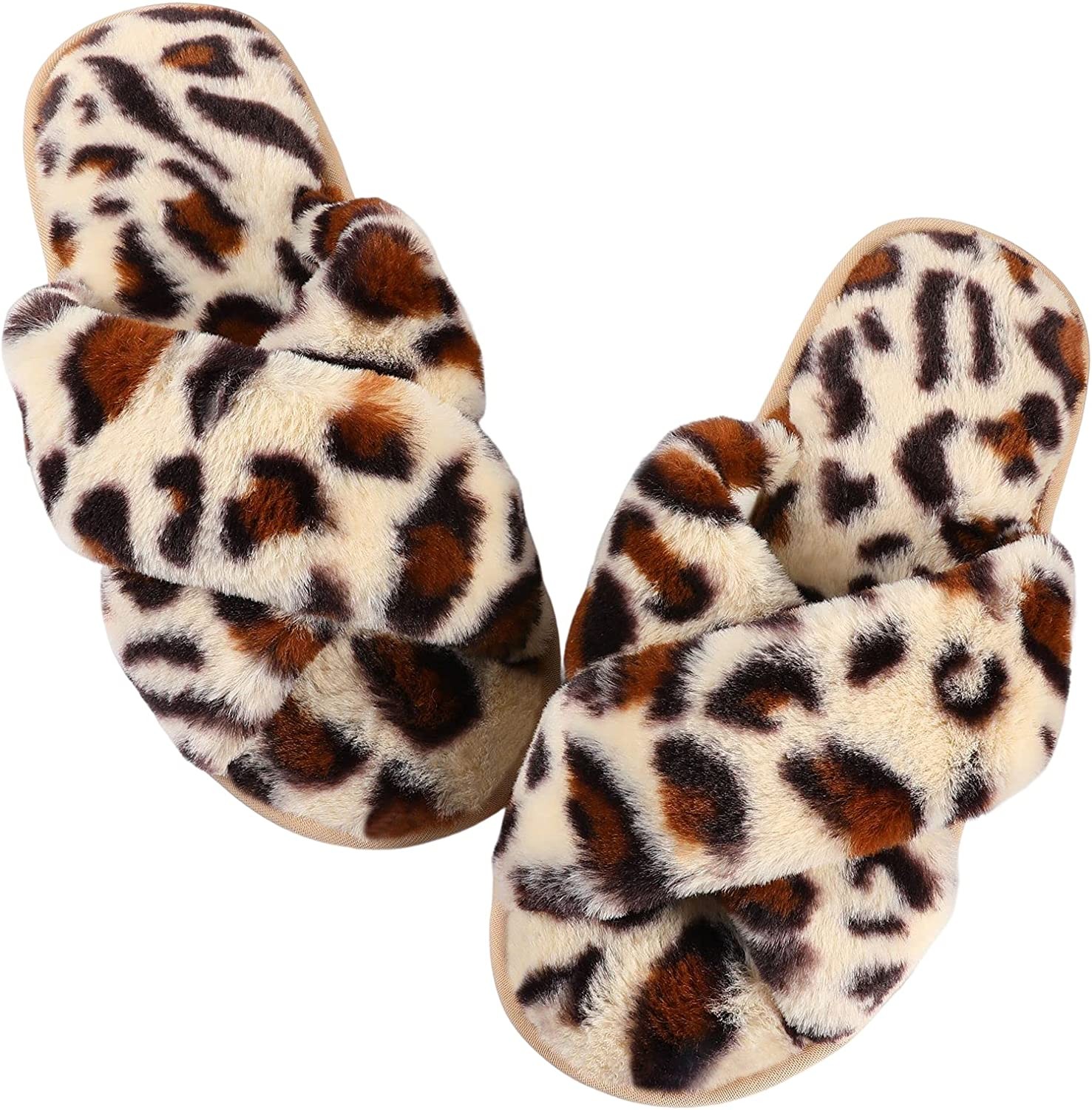 Womens Fuzzy Memory Foam Slippers - Ankis Cross Band Cozy Plush Home Slippers Fl